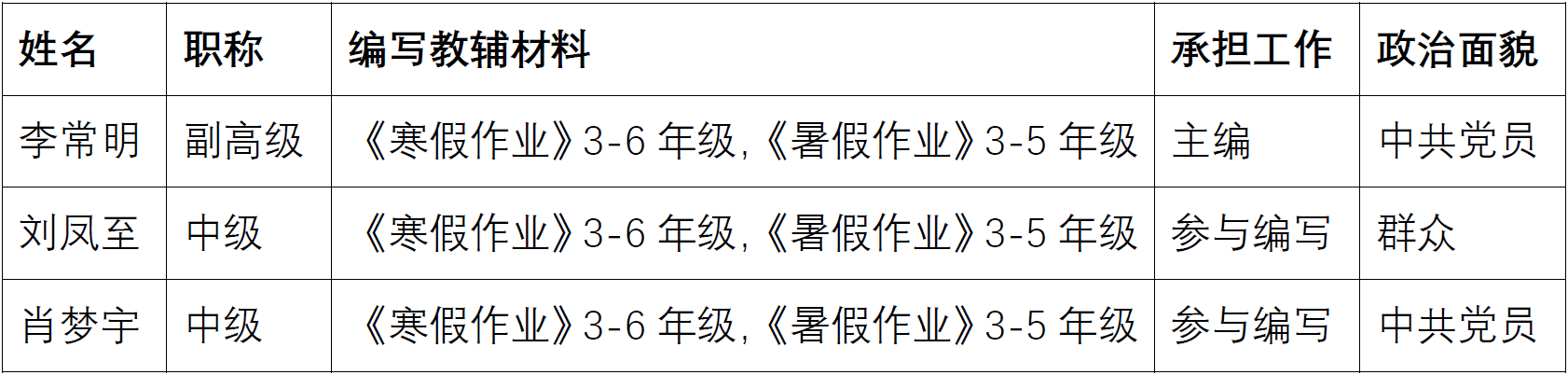根据四川省教育厅《四川省2025年中小学教辅材料评议公告》的要求,现对下列参加四川省评议教辅材料编写人员信息进行公示,接受社会监督。
