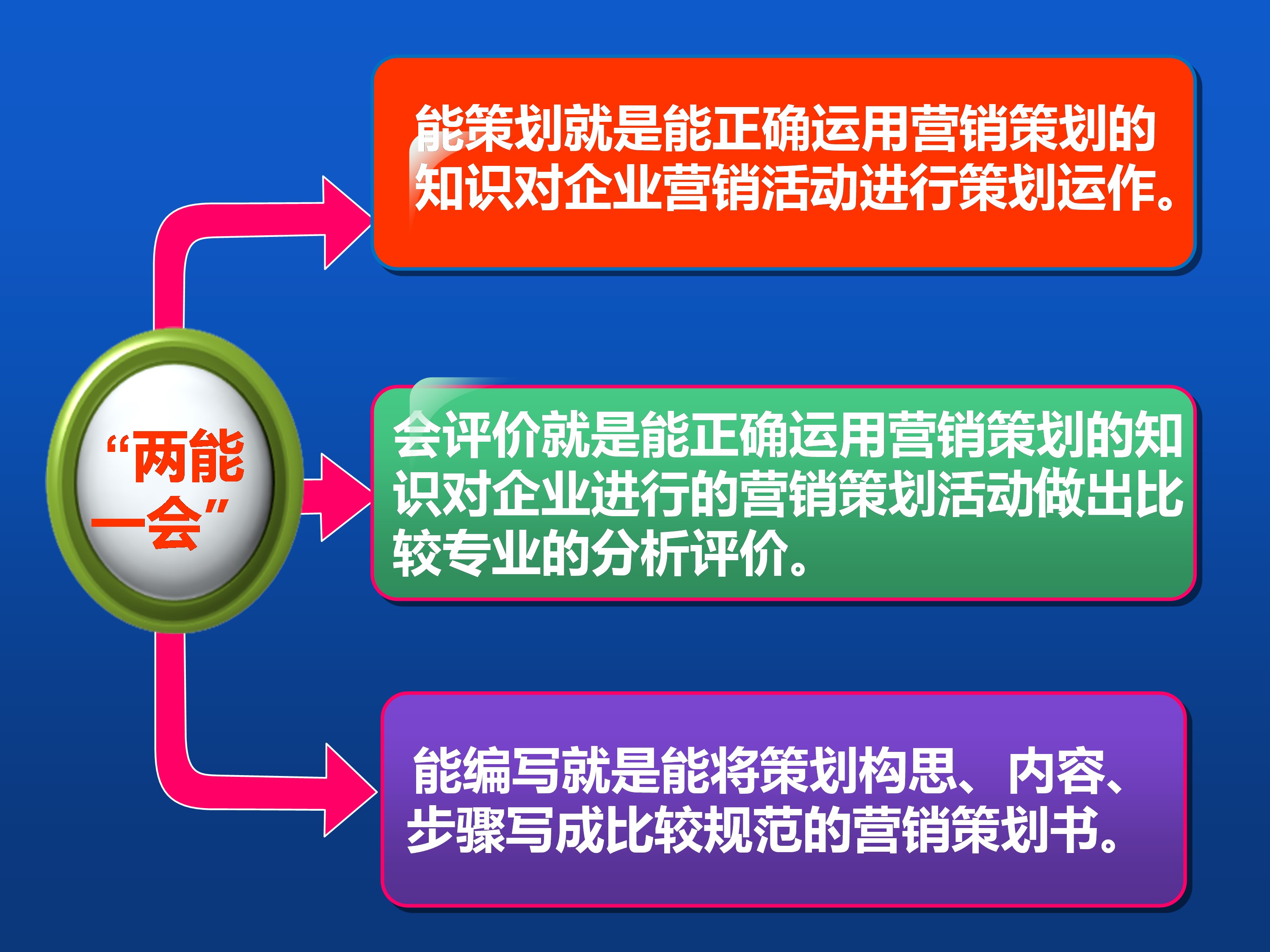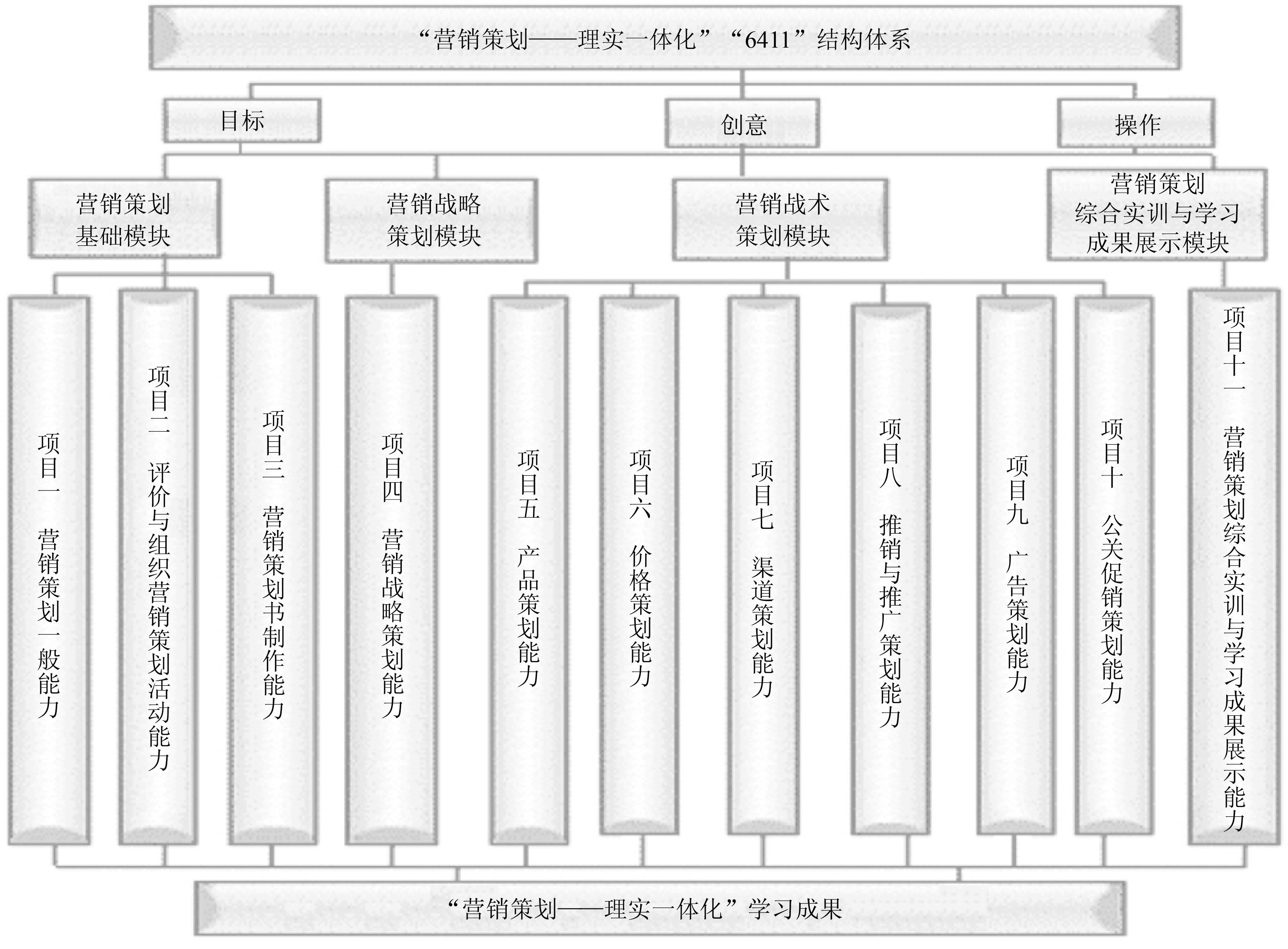 第三,岗课创结合。编写以培养学生具备“两能一会”(能策划、会评价、能编写)的策划岗位职业能力为核心,增加了来自企业真实、可实施、可测评的策划训练项目,把教学侧重点定位在对营销活动的策划、营销策划方案的编写与评价分析上,如下图所示。