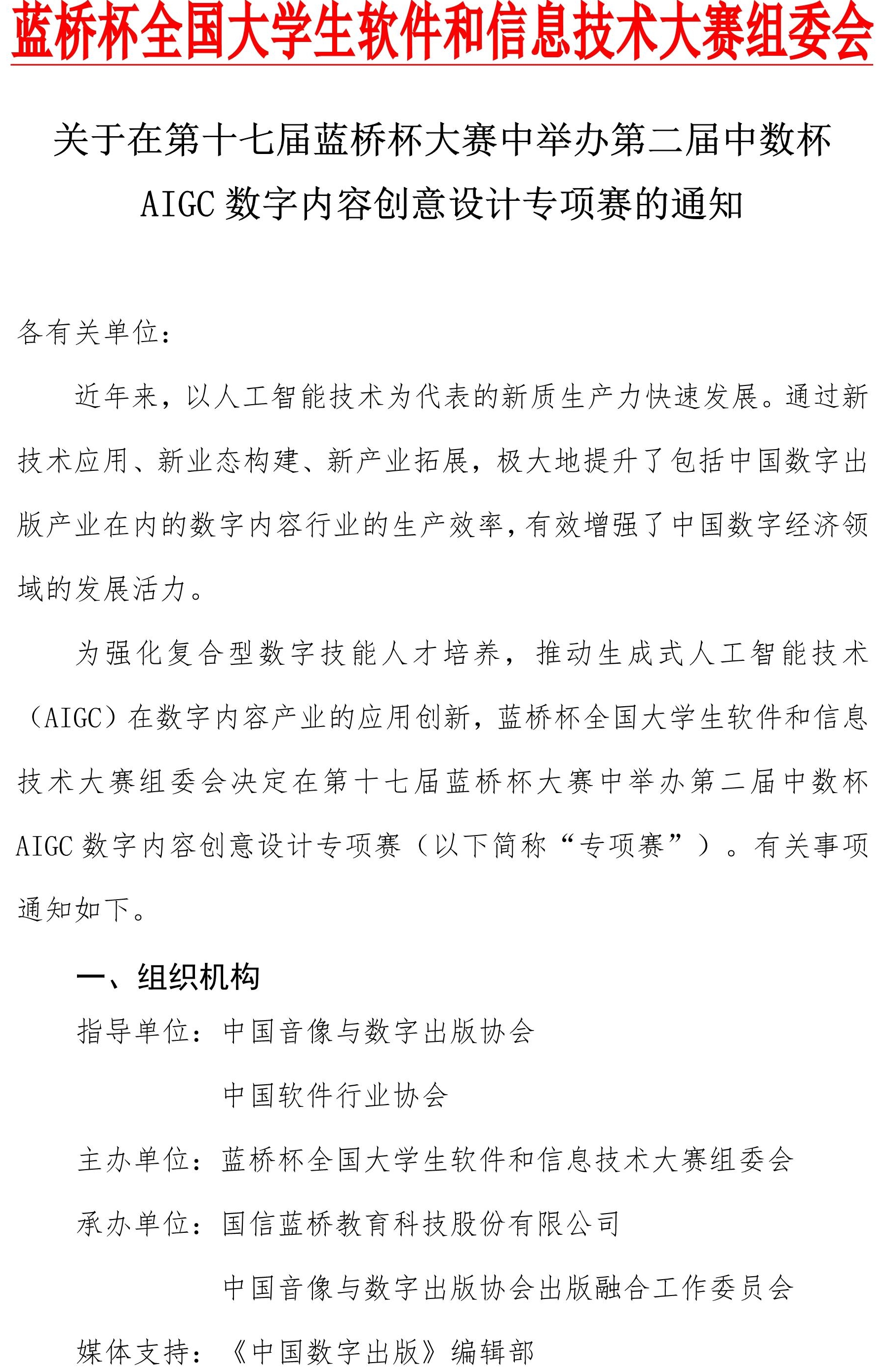 关于在第十七届蓝桥杯大赛中举办第二届中数杯 AIGC 数字内容创意设计专项赛的通知